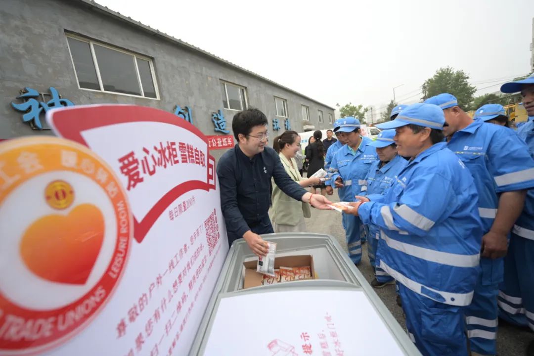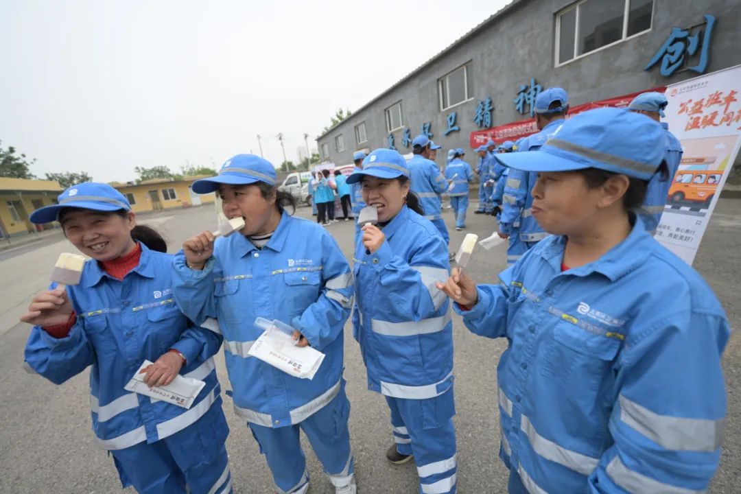 爱心企业为一线环卫代表赠送雪糕!拿到雪糕的环卫工人们满脸喜悦,品尝着丝丝香甜的雪糕,感受着工会组织和爱心企业的暖暖心意!